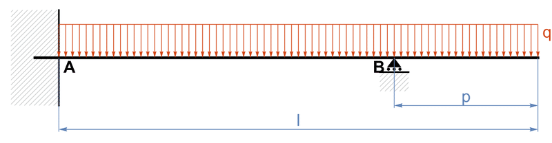 Naším úkolem je určit hodnotu p tak, by bylo ohybové namáhání nosníku co nejmenší.