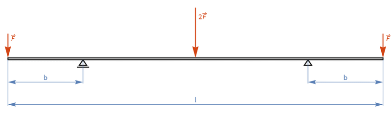 Nosník je symetricky podepřený a zatížený třemi silami - viz obrázek.